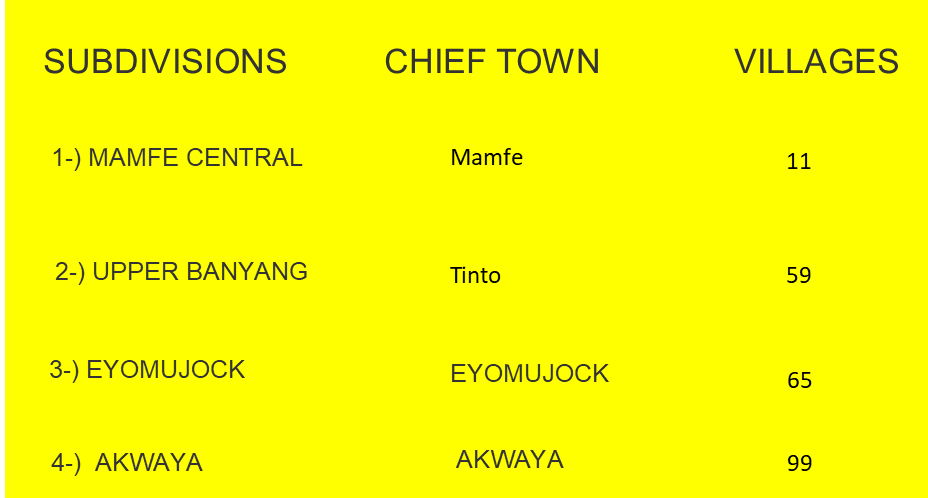 The name “Mamfe†comes from the Bayangui language. When Germans first arrived in the area via the Cross River, the Germans greeted a local man who was carrying sand from the shore and tried interrogating him about where they were. The Bayangui man didn’t understand and only said in his dialect, “I’m carrying sandâ€. The Germans heard this as “Mamfe†and named the area so.
